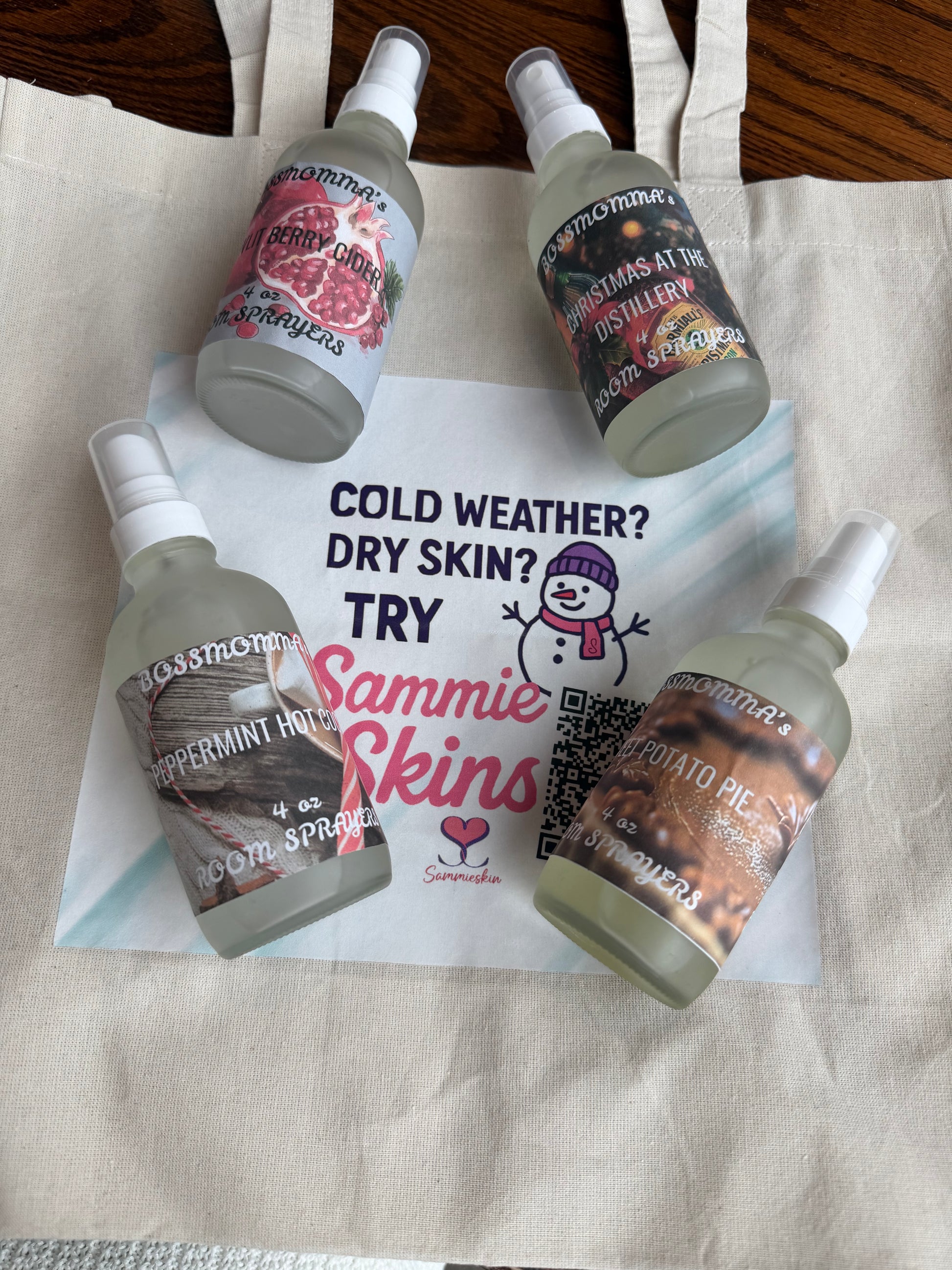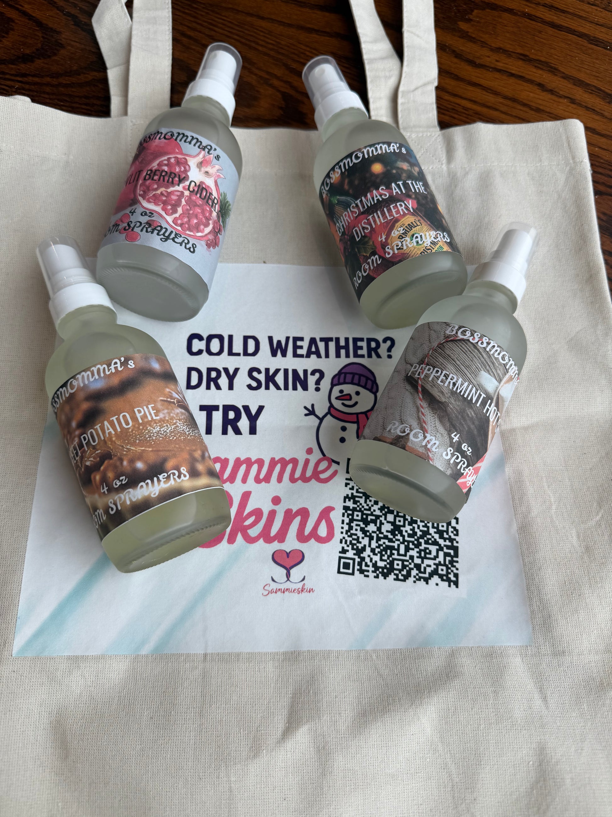 This merry curated set includes four of our signature 4oz room sprays, each crafted to fill your space with holiday magic: