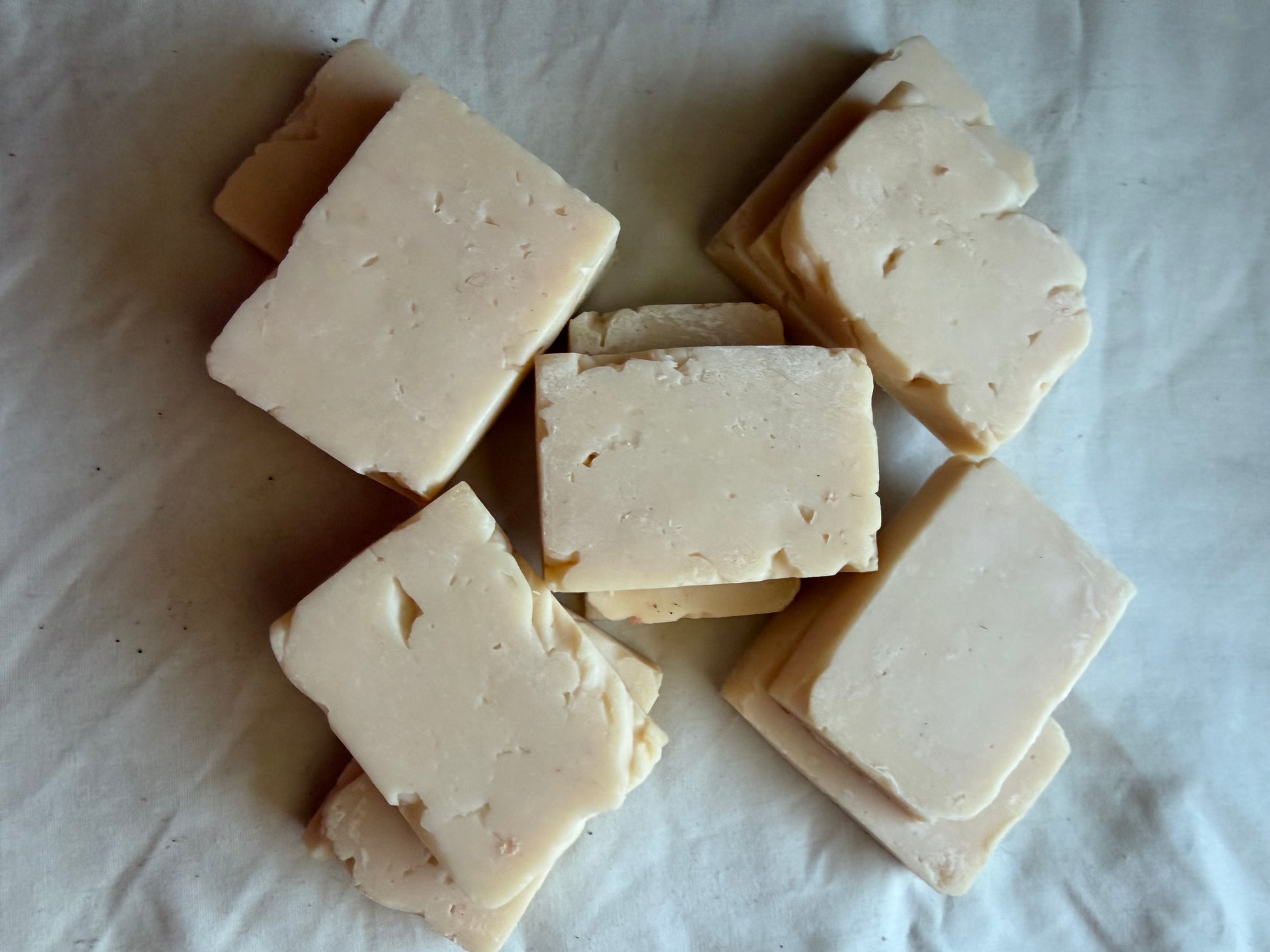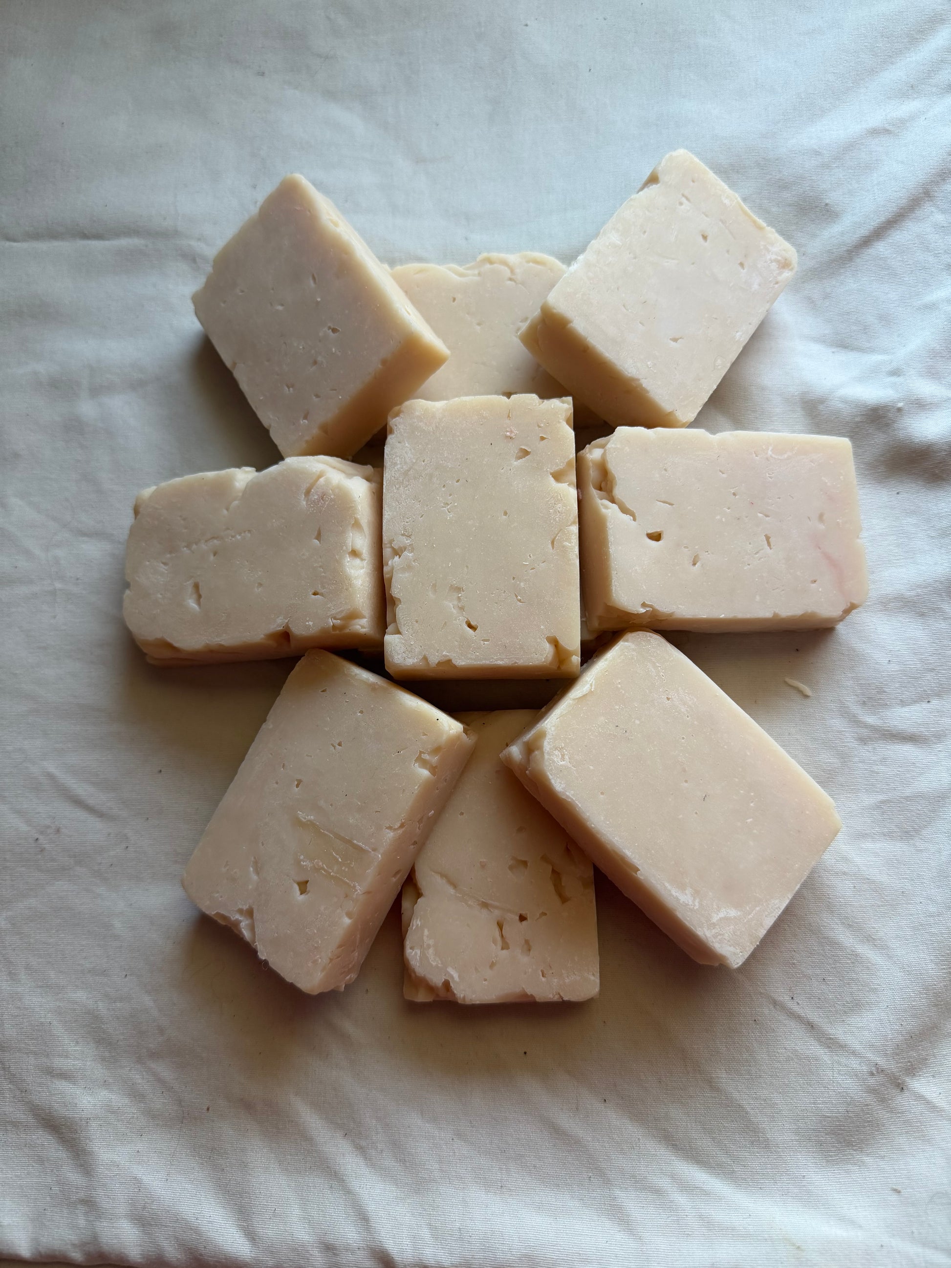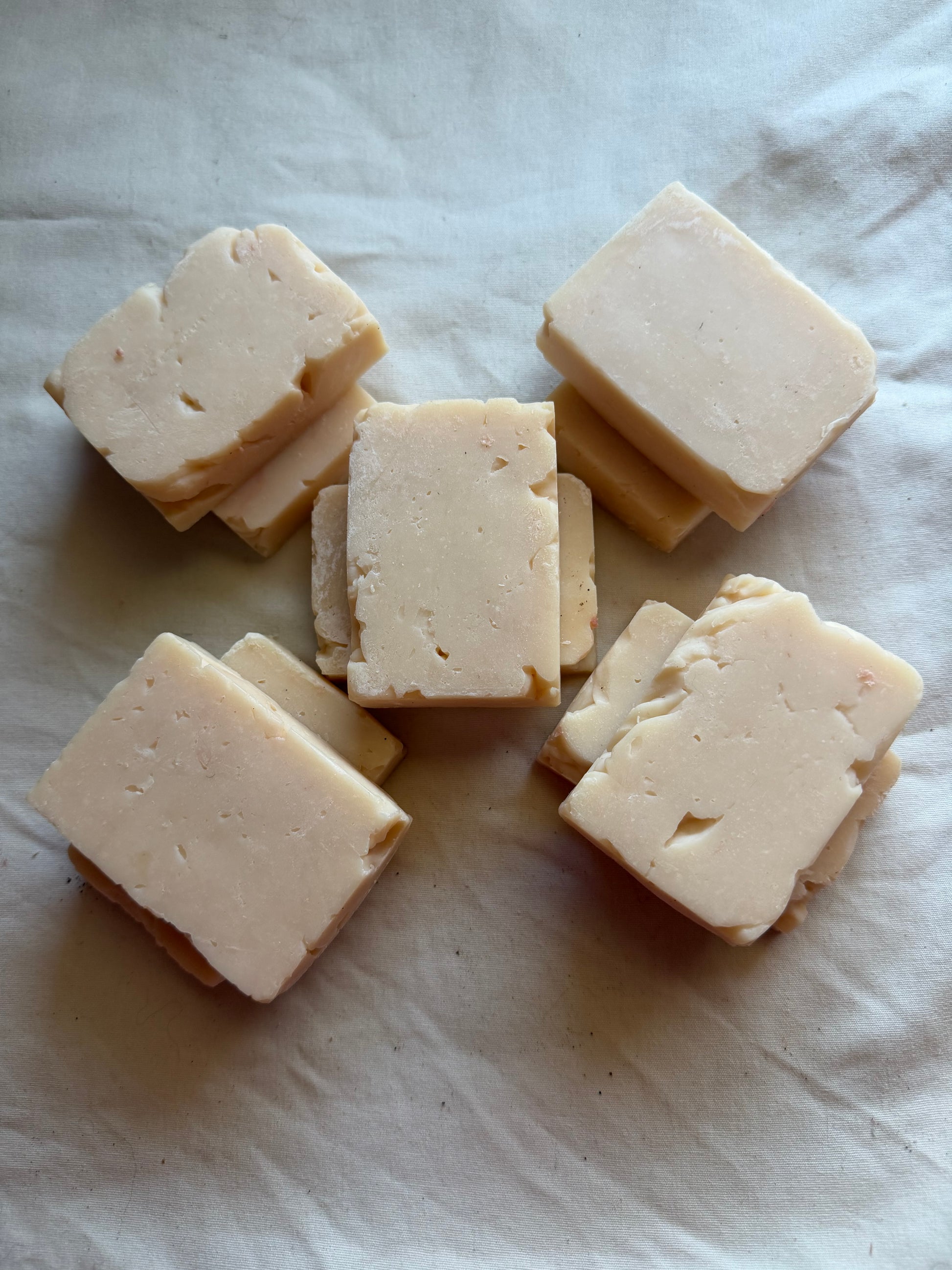 The soaps are made with five simple ingredients Shea butter, Babassu oil, olive oil, lye and water. These are meant to moisturize and cleanse the skin. Leaving it nourished, smooth and with a film on it like most soap bars.